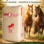 Das LIN-O-Star Leinenstroh wird aus Flachs-Stroh ohne chemische Zusätze produziert. Leinenstroh ist besonders für Pferde mit speziellen Bedürfnissen z. B. empfindlichen Atemwegen oder Hufen oder für Pferdehalter, die Wert auf Nachhaltigkeit und Hygiene legen, eine hervorragende Wahl. Es kombiniert Komfort und Funktionalität und ist daher in vielen Ställen eine beliebte Option.